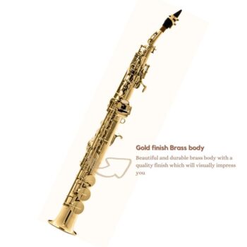 Harmonics HST-410L Bb Straight Soprano Saxophone Gold Lacquer with Luxury Case, Curved Tudel